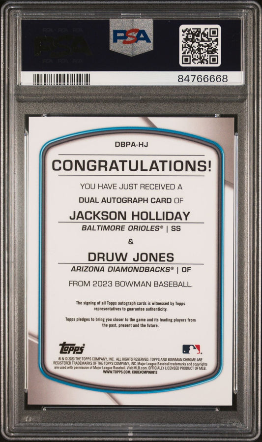 Jackson Holliday Druw Jones 2023 Bowman Dual Bowman Prospect Auto #'d 14/25 PSA 10