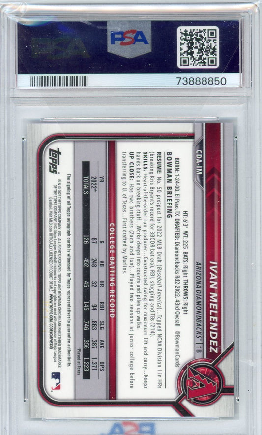 Ivan Melendez 2022 1st Bowman Draft blue refractor autograph #'d 110/150 PSA 10