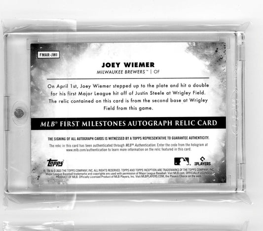 Joey Wiemer 2023 Topps Inception First Milestones base relic autograph rookie card #'d 2/5