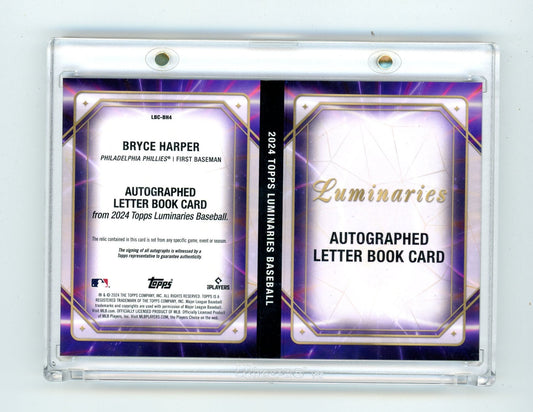 Bryce Harper 2024 Topps Luminaries Autograph Letter Booklet "R" #'d 1/1