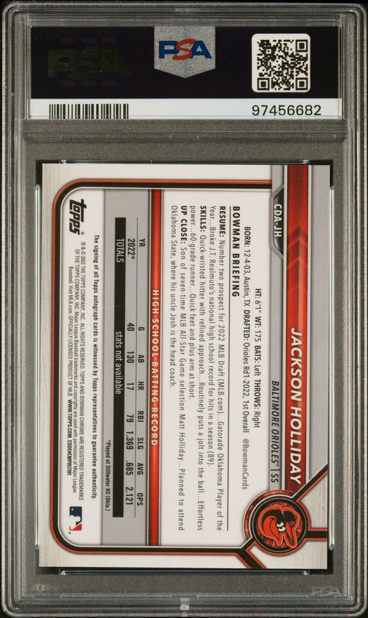 Jackson Holliday 2022 Bowman Chrome 1st Bowman B&W Raywave Autograph PSA 10