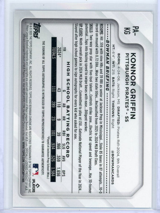 Konnor Griffin 2025 Bowman Chrome NSCC autograph #'d 35/50