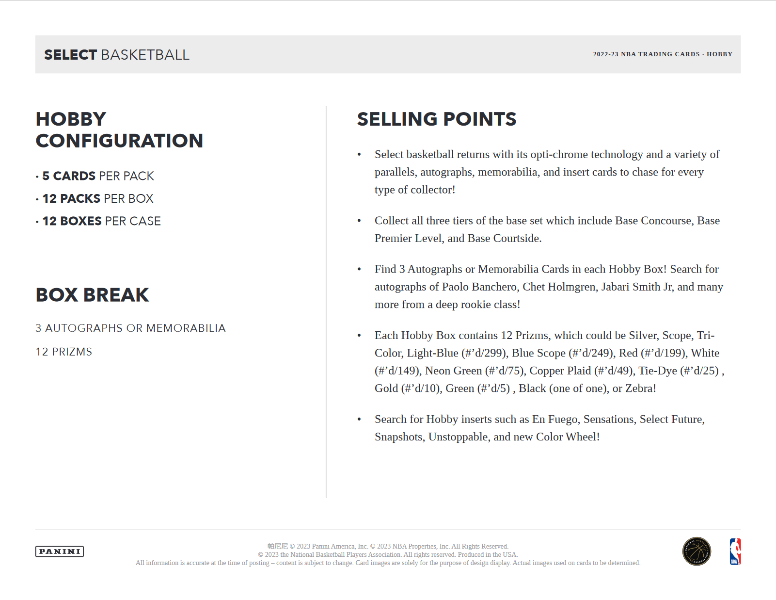2022-23 Panini Select Basketball Hobby 12 Box Case