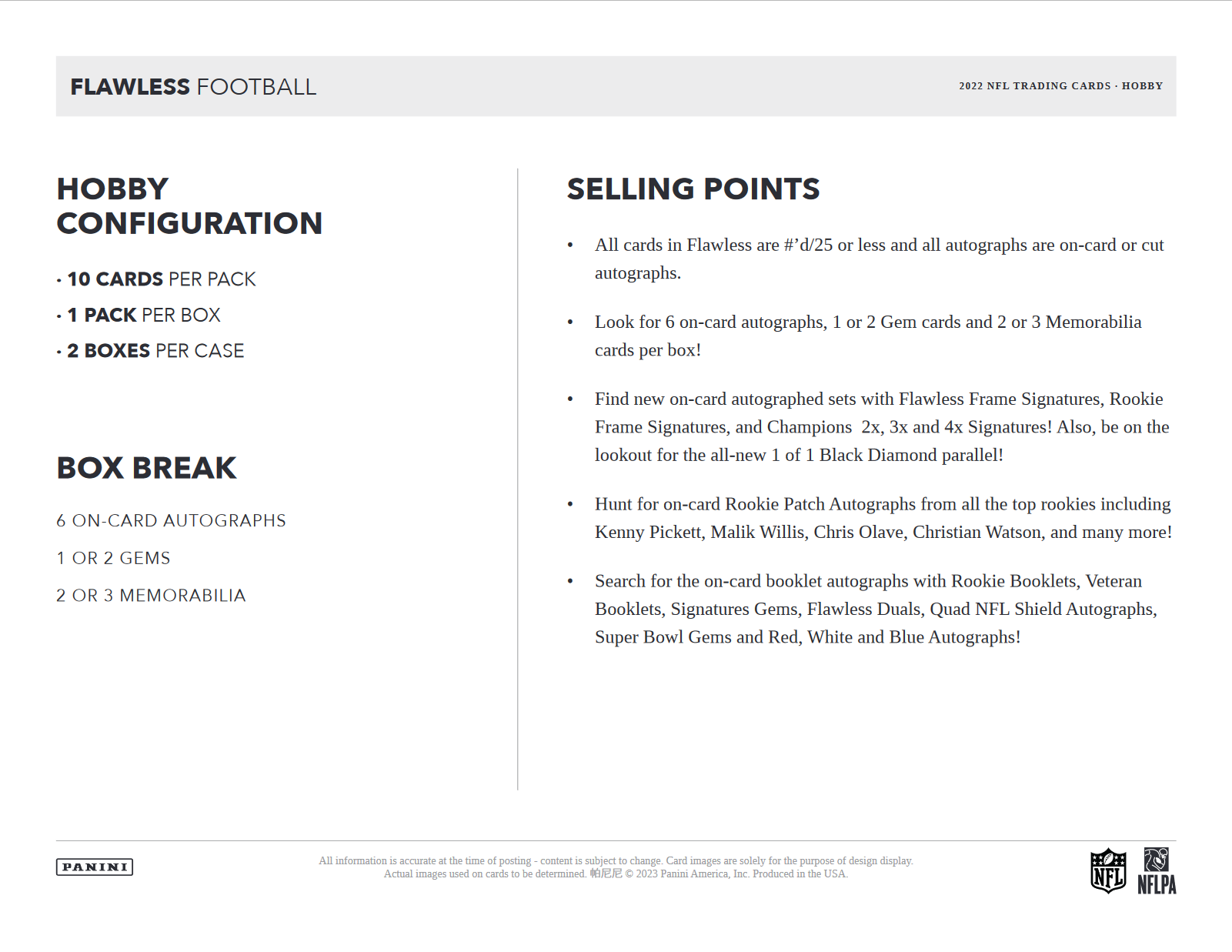 - New in 2022, be on the lookout for Flawless Frame Signatures, a cardset that features colorful action photography paired with a sleek on card autograph!