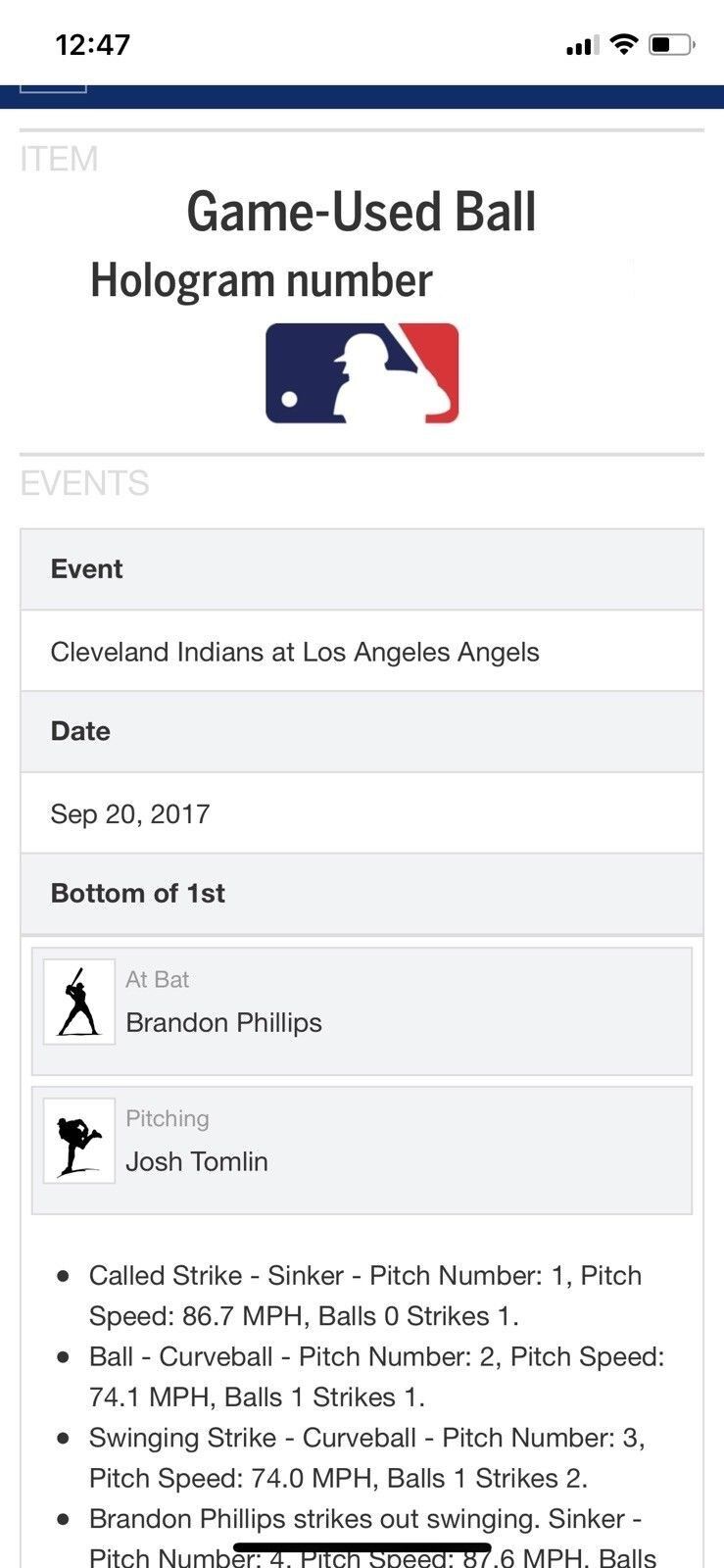 See Pics of the exact baseball and a Screen Shot of the MLB Authentication page from MLB and there authenticator.